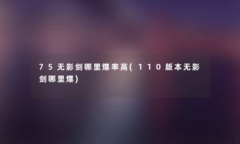 大家好,我是车车,今天给大家带来一个关于《无影剑》的话题。在110版本中,大家都知道无影剑是一把非常厉害的武器,爆率高的地方也是玩家们非常关心的问题。